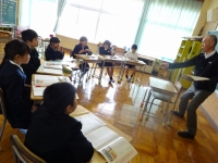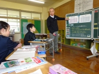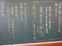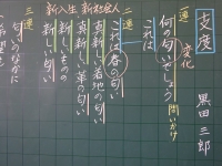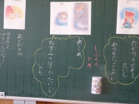 ↓ 机の上には,昨日の学習の「春のうた」にでてきた「(オオ)イヌノフグリ」が飾られていました.冬の冬眠から目覚めた蛙の情景への想像力が高まります.