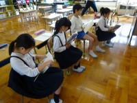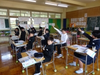 ↓3.4年音楽 音楽室からはつらつとした歌声が聞こえてきました.先生からは,「校歌の意味を考えて歌うと,歌い方が変わりましたね」とほめていただきました.私が初めて校歌を聞かせてもらったときは「われらの希望は 大空かける」と「われらの夢は はてなく広い」の歌詞が素敵だなあと心に響きました.校歌の歌詞は厳選された言葉ばかりです.言葉の意味をじっくり味わっていきたいです.