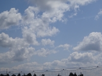 ↓これは,今日4月13日(金)の午前10時ごろの南の空の雲です.中庭では校務員が花壇の整備をしてくださっています.