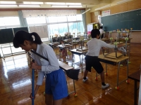 ↓掃除を一生懸命がんばる笠野っ子です.ごくろうさま.きれいにしてくれてありがとう.
