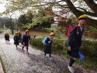 昨年度の学校評価を受けて,本年度自然ふれあいタイムを行います.自然ふれあいタイムは,月に2回程度,昼休みから掃除時間にかけて全校で笠野の森に出かけ,思い切り自然を楽しむ時間です.季節の変化を見つけたり,樹木や草花を観察したり,自然を生かした生活を楽しんでいきたいと思います.