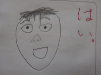 ↓1年 国語 あいうえおの口の形をしっかり作って「あいうえお」の歌を歌ってくれました.将来,アナウンサーや司会者にばっちりなれそうなはっきりとした発音でした.そのあとは,鉛筆の持ち方,姿勢を確認して,正しい書き順で「あいうえお」を書きました.