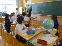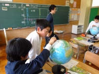 ↓5年 社会 地球儀で赤道,北緯,南緯,東経,西経等,基本となる地図用語を確認しました.