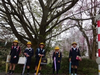 校門付近の桜が見事です.桜に迎えられ,子供たちは元気に登校してきました.