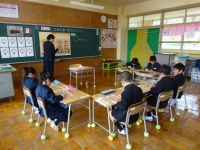 ↓1年生 動物の仲間分けの授業は,算数です.しっかりとした姿勢でよく先生のお話を聞いています.どんどん賢くなってください.