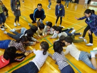 ↓ 音楽1.2年合同 「ロンドン橋おちたー落ちたー」歌いながら大いに盛り上がっていました.
