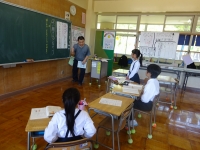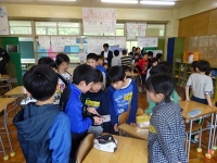 ↓2年 生活科 ICT活用をして,自分の思いを説明しています.資料を見て証拠を見せて,そして自分の考えを伝える,このような活動は大人になって社会に出てからも大事な力となります.「自分の考えを根拠を示し,堂々と話せる人になってほしい」と願い,普段の授業から意識して育てています.