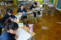 昨年度の学校評価を受けて,本年度自然ふれあいタイムを行います.自然ふれあいタイムは,月に2回程度,昼休みから掃除時間にかけて全校で笠野の森に出かけ,思い切り自然を楽しむ時間です.季節の変化を見つけたり,樹木や草花を観察したり,自然を生かした生活を楽しんでいきたいと思います.