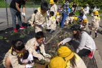 ↓緑の祭典の後は,笠谷公園と七黒トンネル付近に花を植えました.この活動は今年で21年目を迎えるそうです.当時は道路に空き缶などごみが捨てられ何とかしたいという思いで花を植えることにしたそうです.そのおかげで,今も笠野地区は緑いっぱい花いっぱいの気持ちの良い地域となっています.本日は活動ありがとうございました.