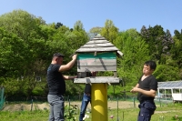 ↓その後,PTAの皆さんが中庭の老朽化した巣箱が危険でしたので撤去をしてくださいました.これは平成25年に愛鳥モデル校の指定を受けた時に設立されたものと思われます.再建はただいま検討中です.