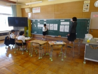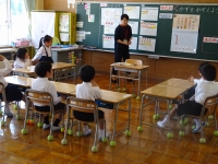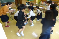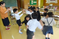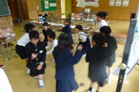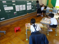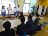↓2年生 1年生と仲良くする会を計画!司会さんが上手に会を進行しました.こままわしやおはじき,お手玉など2年生が見本を見せてあげ,1年生は大喜びです.1,2年生一緒に楽しみました.