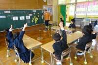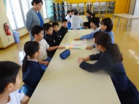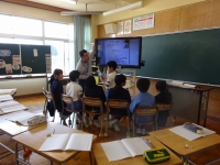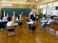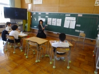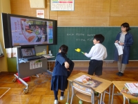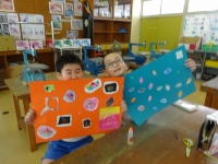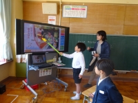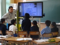 ↓2年 生活科 ICT活用をして,自分の思いを説明しています.資料を見て証拠を見せて,そして自分の考えを伝える,このような活動は大人になって社会に出てからも大事な力となります.「自分の考えを根拠を示し,堂々と話せる人になってほしい」と願い,普段の授業から意識して育てています.