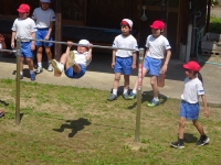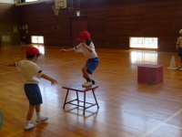 ↓1.2年生の体育です.登ったり,走ったり,跳んだり基本の運動です.