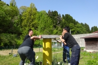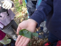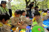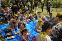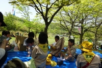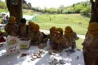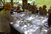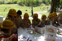 ↓間伐材を利用した工作も楽しみました.お昼は緑の木々の下で,さわやかな春の風で揺れる木漏れ日を感じながら,おいしいお弁当をいただきました.