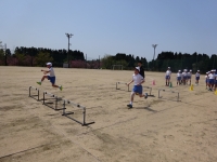 ↓5,6年 体育 ハードルでフォームを練習しました.よいホームを見て学び,自分に取り入れようと何回も練習しました.