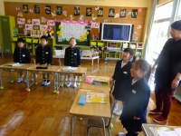 ↓ 「なかよしグループ」の発足式を行いました.上級生がリードして自己紹介やグループのめあてを説明して,なんともほほえましい様子がたくさん見られました.