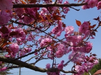 ↓ 八重桜が見事に咲き誇っています.笠野小は桜の木に囲まれている学校です.