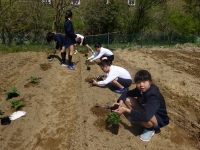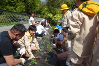 ↓理科 野菜の苗植えや種まきをしました.生長を楽しみにして観察してください.畑を耕し,畝を作ってくださった方々へ感謝の気持ちを伝えることができたら素敵ですね.