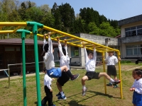 ↓ 午前中の体育です.鉄棒や雲梯でたくさん遊ぶと握力もアップしますよ.
