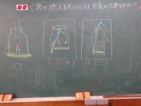 ↓6年理科 ろうそくはどんな時に燃え続けるのかな 予想を図を描いて説明しました.理由を付けて考えを説明できる力を授業で大切にしています.