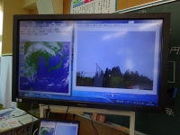 ↓5年生理科 実際の雲を観察し,今の天気図と見比べて納得しました.今後の天気も予想できそうです.ICTが効果的に活用されています.
