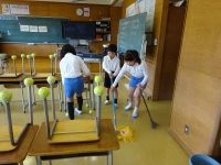 ↓算数 1年生 輪投げをして,実際の数と数字をつなげ数の概念を確かなものにしています.