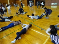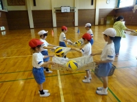 ↓ 音楽1.2年合同 「ロンドン橋おちたー落ちたー」歌いながら大いに盛り上がっていました.