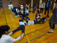 ↓ゲーム1 ピラミッドじゃんけん大会 じゃんけんに熱が入りました.力いっぱい出したグー・チョキ・パー!大いに盛り上がりました.