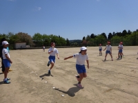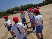 ↓1.2年生合同体育です.折り返しリレー,二人で息を合わせて,しかも素速く,レッツGo!