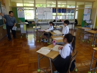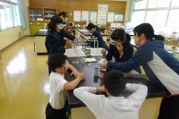 ↓ 5年理科 天気の学習です.雲の動きと実際の空を見て明日の天気まで予報をしています.明日の2校交流の遠足のことがありますので,切実です.