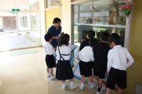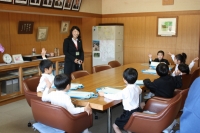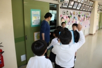 ↓1年生が学校探検 校長室を探検に来ました.校長室は「おまじない」のおへやでもあります.「めんどくさくい」「怒りたい」「悲しい」「人見知りする」・・・など困ったことがあったら「頑張る勇気」「元気になる」,そして,「優しくなる」おまじないをかけてあげますので,いつでもきてください.すぐに笑顔になるとびっきりの「おまじない」を教えてあげますよ.1年生は自分から質問もたくさんできました.よい質問ばかりでした.興味を持つことが学習の第1歩,何かな?どうしてかな?と疑問を持って学習してくださいね.