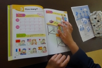 ↓英語活動 How many ~ ? 〈数はどのように数えるかな〉ビンゴをしたり,テキストブックのイラストで数えたり,英語で数える活動をたくさんしました.日常生活でもお風呂の中や歩きながら英語で数えたり,時間を英語で言ったり意識して使ってみましょう.使って慣れることが上達の一番の方法です.