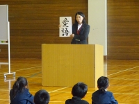 もう一つは,校訓の「愛語」,相手を思いやる優しいこと言葉についてお話しました.愛語の反対は「からかいやふざけ」などですが,いじめは決して許されないこと,優しい言葉でいっぱいの学校にすることをみんなで願い,実現していきましょうと約束しました.