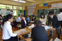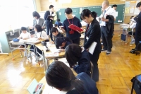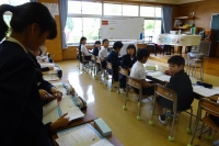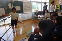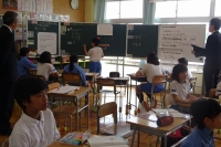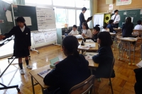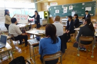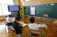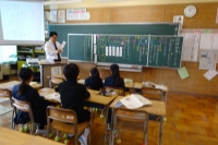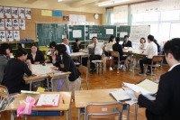 ↓その後,2校の教員で授業研究を行いました.子供たちが学習ガイドを中心に自分たちで主体的に授業を進めていること,教師は出る場所を考え適切に指導していること,まとめや適用問題をすることで確実に基礎基本の定着が図れることを話し合いました.有意義な研究会となりました.