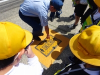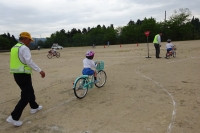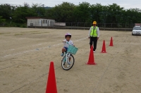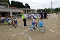 心配していたお天気ですが,何とか持ちこたえました.保護者の皆様におかれましては自転車の運搬ありがとうございました.運動場に道や横断歩道を作り,実際の安全な乗り方や歩き方について警察署や町役場の皆様からご指導いただきました.「ぶたはしゃべる」ブレーキ,タイヤ,反射材,車体(サドル),ベル等自転車の安全点検が大切なことも教えていただきました.この地域は坂が多いのでスピードの出しすぎには十分注意してください.最後はDVDを見て,安全教室の振り返りができました.
