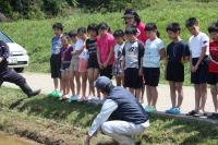 ↓引き続き,日本野鳥の会と石川県猟友会の先生をお招きし,笠野の森と学校周辺の探鳥会を行いました.学校前に11種類の鳥のさえずりが聞こえ,中庭では,新たに3種類の鳥のさえずりが聞こえたということで,本当に自然豊かな環境を嬉しく思います.子供たちは,早速,双眼鏡を覗いて,アンテナにとまっていたセグロセキレイを観察しました.
