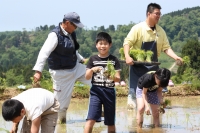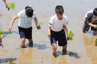 五月晴れ,市谷農事組合の皆様のご協力により,今年も田植え体験をさせていただきました.土の温かさ,豊かさ,水の温もりを感じました.これから収穫までたくさんの作業がありますが,よろしくお願いします.稲の生長が楽しみです.