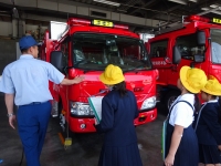 ↓4年社会 消防署見学 町の消防署見学に行ってきました.丁寧に説明して頂き,火事になったら早く出動し,消火できるひみつをたくさん見つけることが出来ました.丁寧に教えていただき,ありがとうございました.