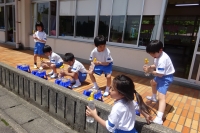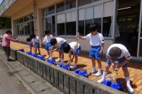 ↓1年 朝顔の種を5つ,まきました.お水をたっぷりあげるので,きれいなお花を咲かせてくださいねと種にお話しました.
