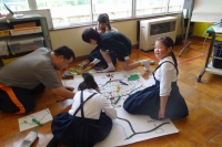 ↓ 3年生は社会科で自分たちが住んでいる地域の土地利用や交通の広がり,古くから残っているもの等の特徴を調べ,校区地図にまとめてきました.今日はやっと完成しました.次は,町の様子についての学習に広がっていきます.
