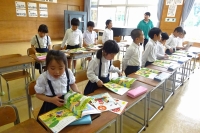 ↓1年担任が出張でしたので,1年2年生合同で,学校司書の先生に本を読んでいただきました.絵本の世界にぐっと引き込まれ,1冊目は「〇っぱ」は,はっぱ?らっぱ?かっぱ? 2冊目は自分のふとんのお話,想像力がどんどん広がるお話でした.最後の紙芝居は,予想を覆す思いもよらない変身ぶり,固定概念ではなく意外性に大いに盛り上がりました.本は心の栄養,読書が大好きな子供たちです.