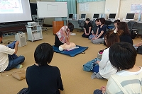 ↓今日は救急法心肺蘇生法の講習会も行いました.定期的に講習会で練習することがとっさの場合に役立ちます.胸骨圧迫,AEDの使用方法等を教えていただき,津幡町消防署の指導員の先生,ご協力ありがとうございました.