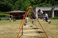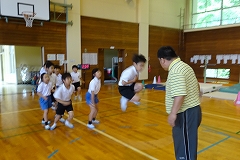 ↓ 1.2年体育 合同でしました.2年生の跳び方を見習って,1年生は思い切って大繩に入り,大きくジャンプ! 大成功です.