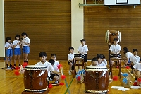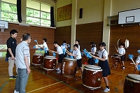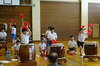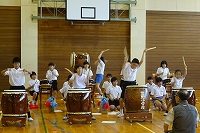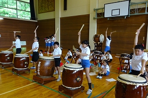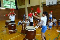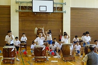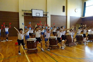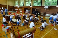 ↓ 水や火の恵みをいただき,この地で「共に生きる喜び」をでんでこ太鼓で表現しています.力強さや楽しさが伝わるように工夫しています.だいぶ上達してきました.