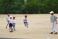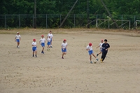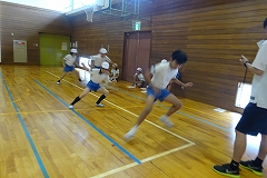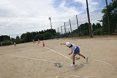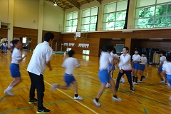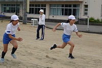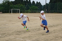 ↓ 5,6年体育 50M全速力で走りきりました.その後,先生も一緒にサッカーゲームをしました.