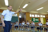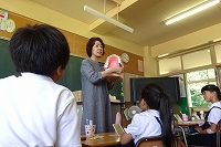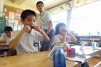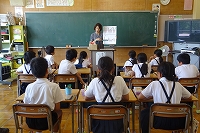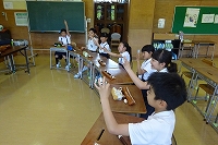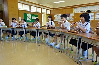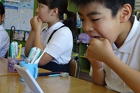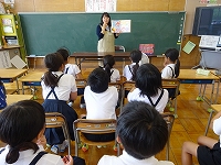 ↓ 3,4年生 歯科衛生士さんと保健師さんをお招きし,「大切にしよう・自分の歯」歯の健康教室を実施しました.1日3回磨いても,だらだら食べていると虫歯になりやすく,たとえ1日2回の歯みがきでも,規則正しい食生活をしている方が虫歯にはなりにくいという実例もあるそうです.また,フロスは一生使った方がよく,今のうちから,使い方に慣れておくとよいということでした.子供たちは鏡を見ながらフロスを使い,だんだん慣れていきました.ご家庭でもフロスを継続して使用してみてください.