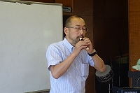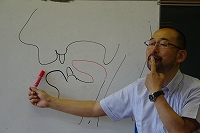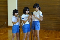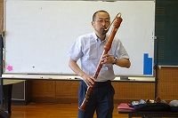 ↓東京からお招きした,リコーダーのプロの先生に直接ご指導いただきました.本物の音色にうっとりしました.子供と同じリコーダーなのに,これまで聴いたことのないような音色で演奏してくださりびっくりしました.また,小さな笛や,大きな笛での演奏も聴かせてくださいました.本物のすばらしさは,子どもの心にぐっと響いたことでしょう.