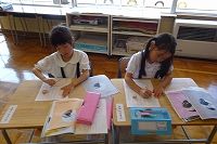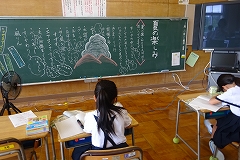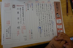 ↓3.4年 書写 相手に気持ちを伝える手紙を丁寧に書く学習です.中心線を意識して,宛先や差出人の文字の大きさにも気を付けて書きます.メールが頻繁に使われる時代ですが,直筆でさらっと手紙が書けることはすてきですね.大切にしたいと改めて思いました.