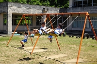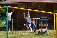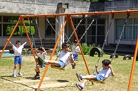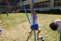 ↓今日はさわやかな天気でした.長休みは,元気に外遊びをしている1年生です.