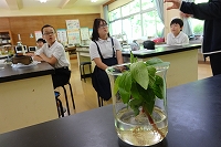 ↓ 6年 理科 根から取り入れた水分は,どこを通って植物全体に運ばれるのか.染め出し液を使って,実験することにしました.